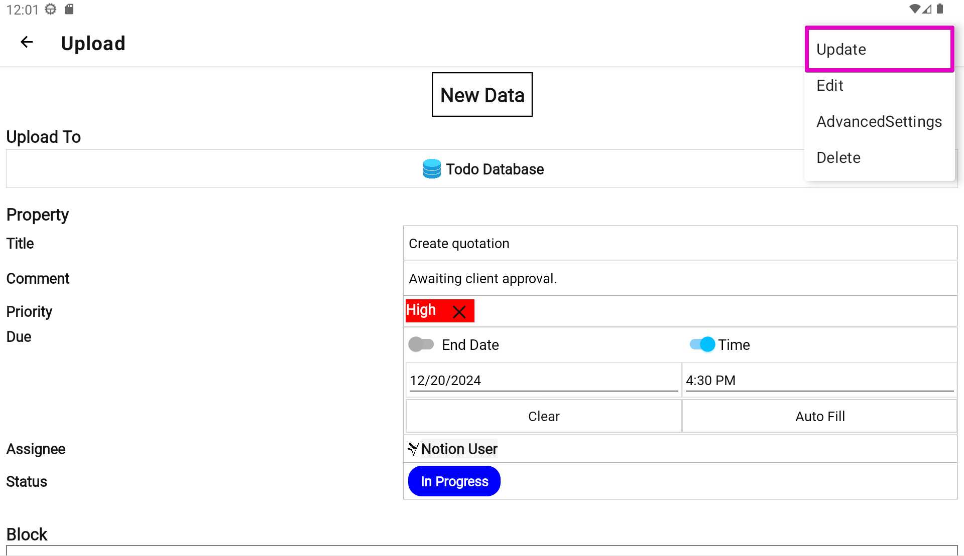 If you change the name, icon, or properties of a page or database in Notion, just tap the update button to instantly sync the latest changes to the app.